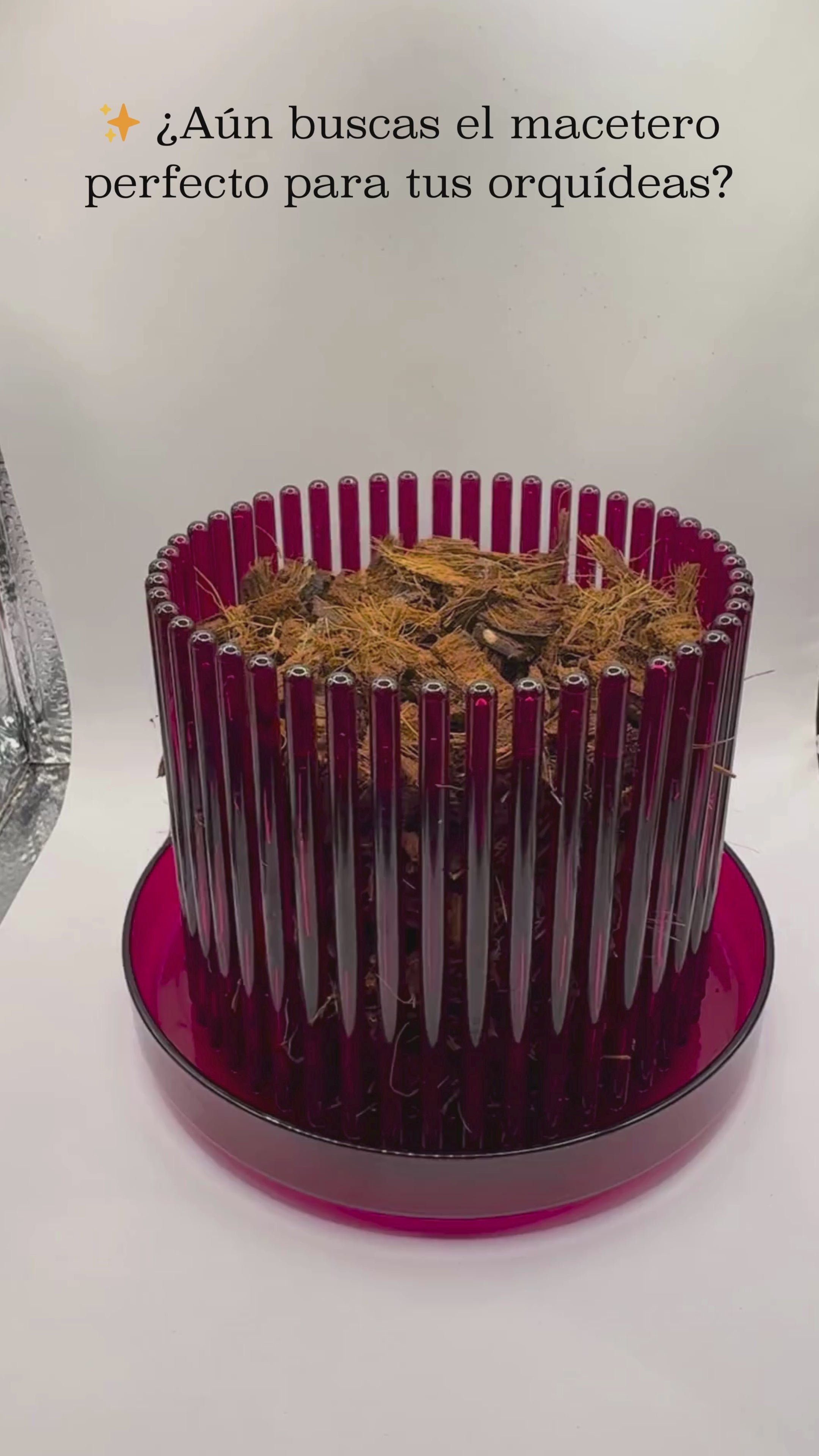 Este macetero color morado semitransparente de la marca Chitop está especialmente diseñado para orquídeas como la Phalaenopsis. Fabricado en policarbonato de alta resistencia, permite un excelente paso de luz hacia las raíces, favoreciendo la fotosíntesis radicular.